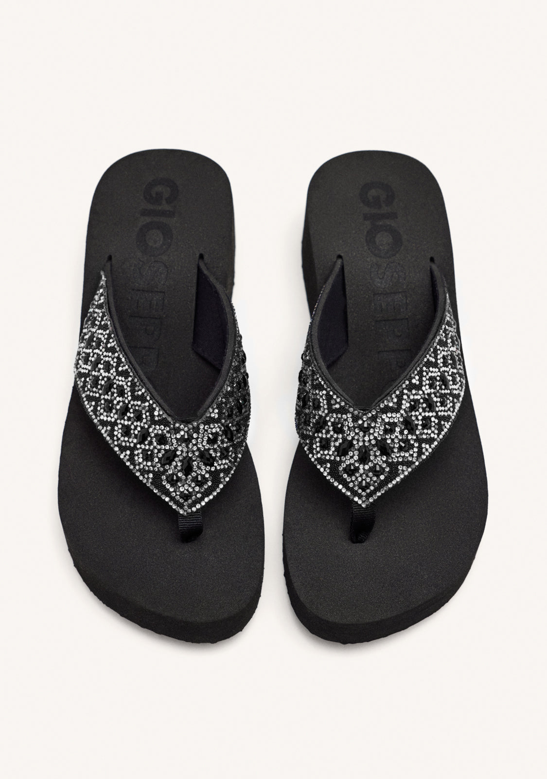 BLACK WEDGE SANDALS WITH CRYSTAL EMBELLISHMENT FOR WOMEN DRENOVE