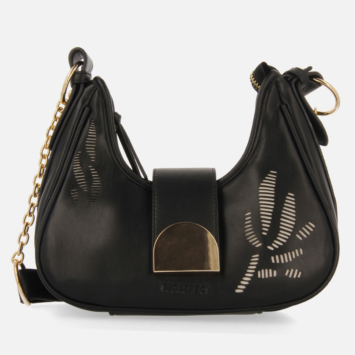One of the season's jewels! Black shoulder bag with western details and flap closure with buckle and zipper. Chain handle. Discover all the new handbag arrivals for women in the new Gioseppo Accessories collection.