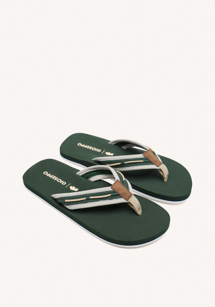 Flip-flops with contrasting colours. They have a soft anatomical sole. Composition: - Upper and lining made of polyurethane and polyester. - Sole and sole made of lightweight EVA.