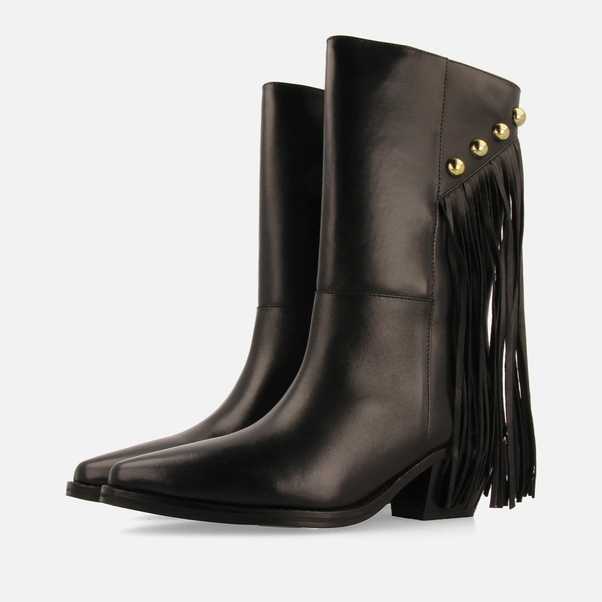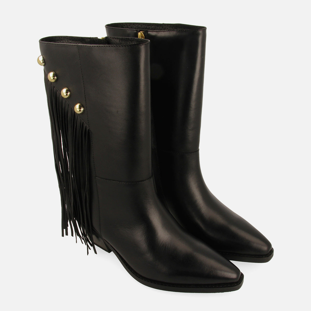 LEATHER ANKLE BOOTS FRINGES AND STUDS BRUNSWICK