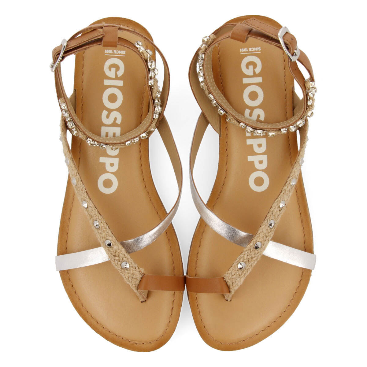LHUINS WOMEN'S FLAT SANDALS WITH STONES AND LEATHER AND JUTE STRAPS
