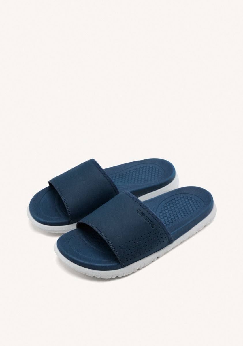 Flip-flops with a padded insole and non-slip sole. Composition: -Polyurethane upper. -Polyester lining. -Fylon sole, a shock-absorbing, non-slip and ultra-light material. -Flexible TPR sole.