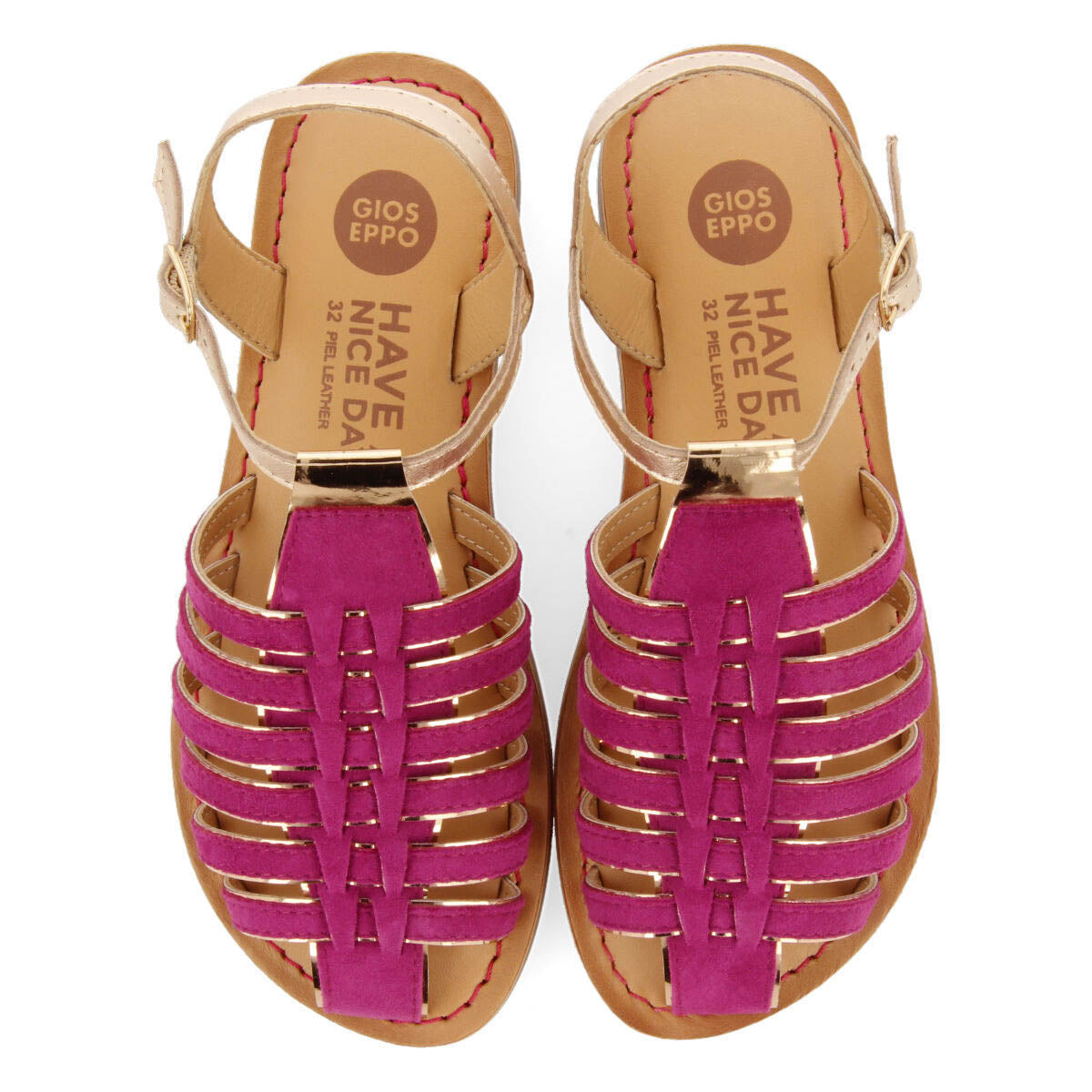 BAILLIF GIRLS FUCHSIA LEATHER MULTI STRAP SANDALS