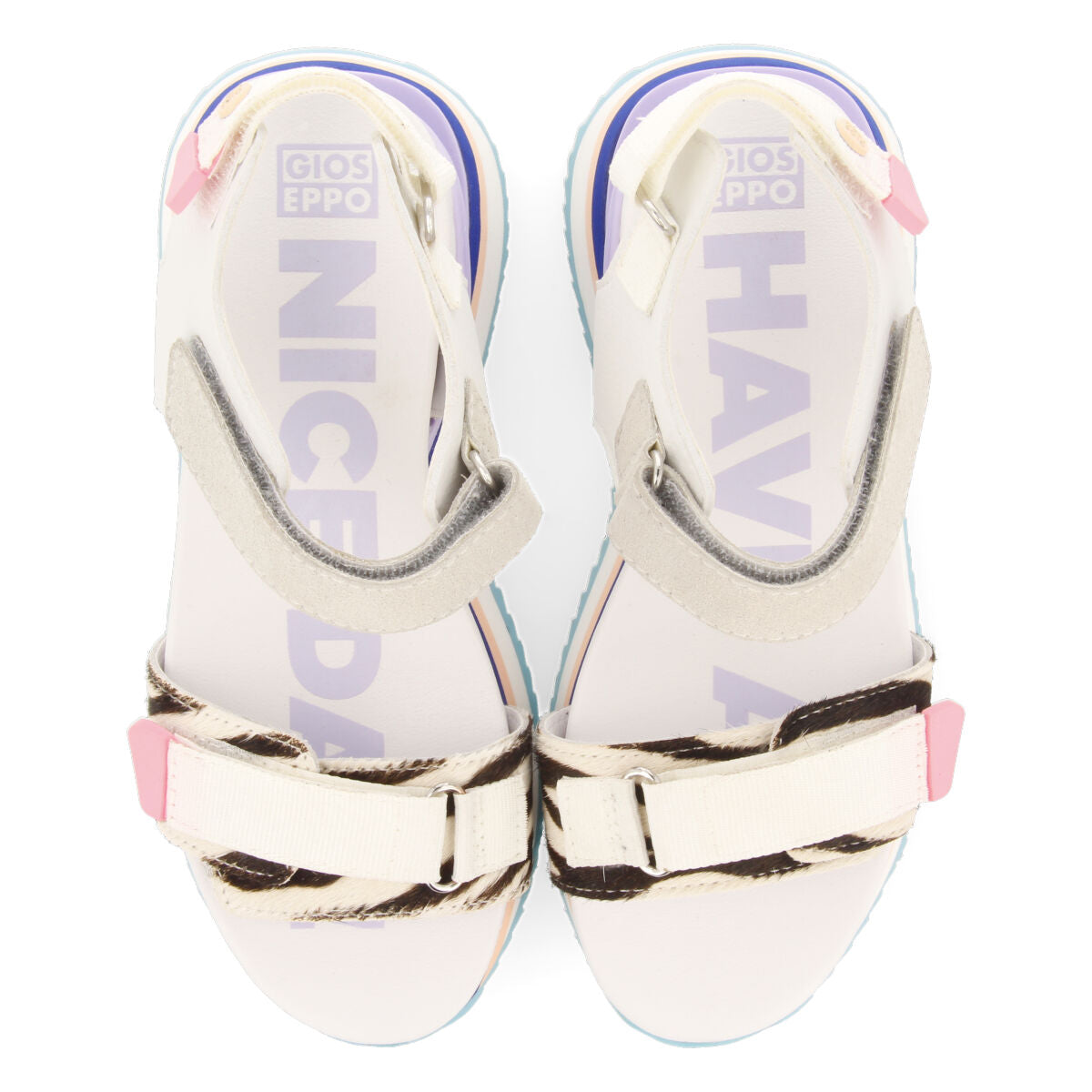 BALDIM GIRLS SANDALS WITH WHITE AND ANIMALRINT ADJUSTABLE STRAPS