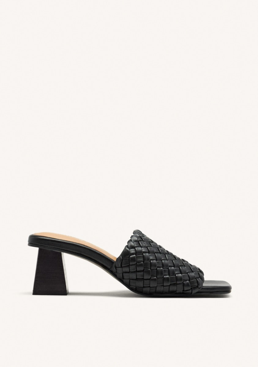 BRAIDED LEATHER HIGH HEEL MULES SANDALS COLRAIN