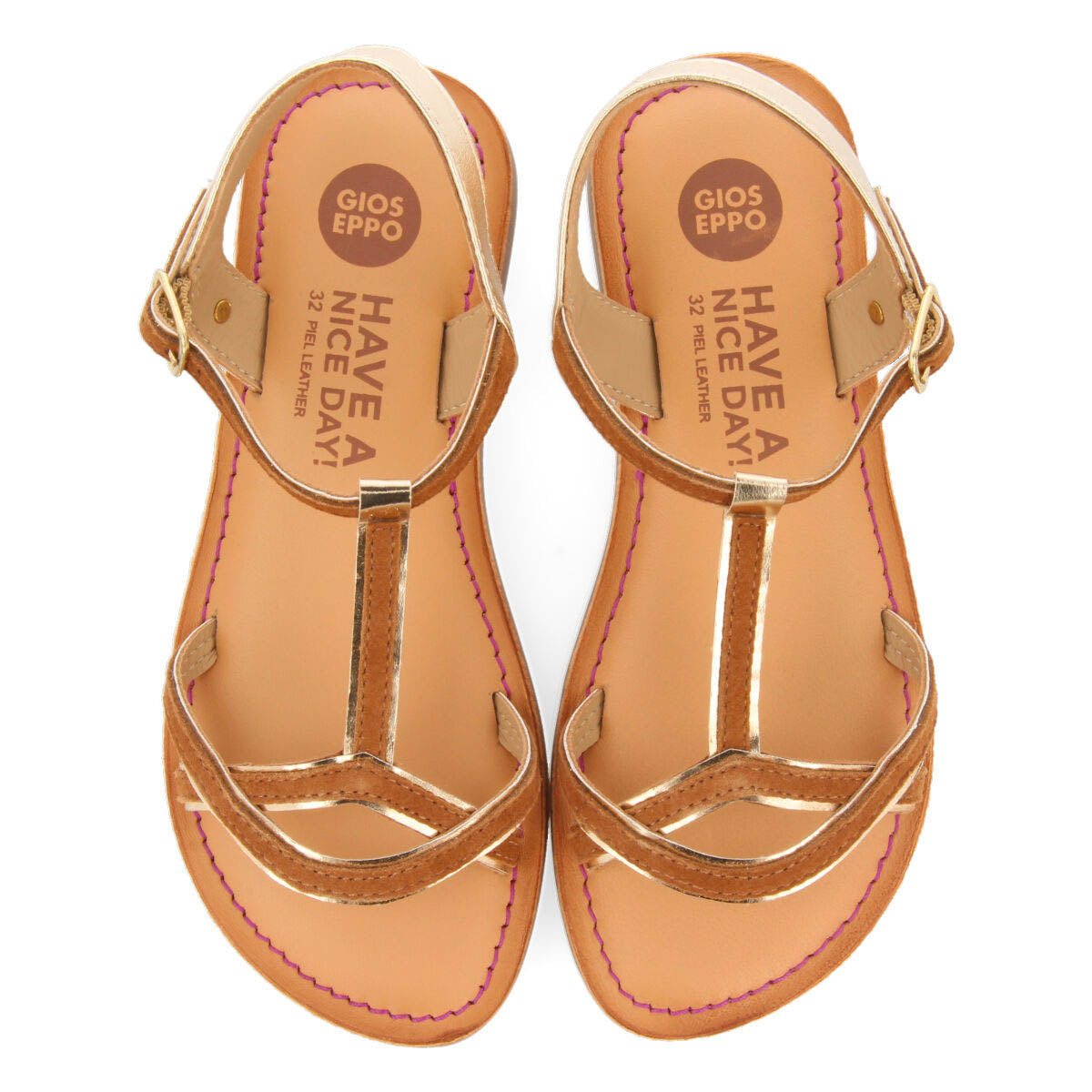 CLEURIE GIRLS TAN SANDALS WITH METALLICIPING