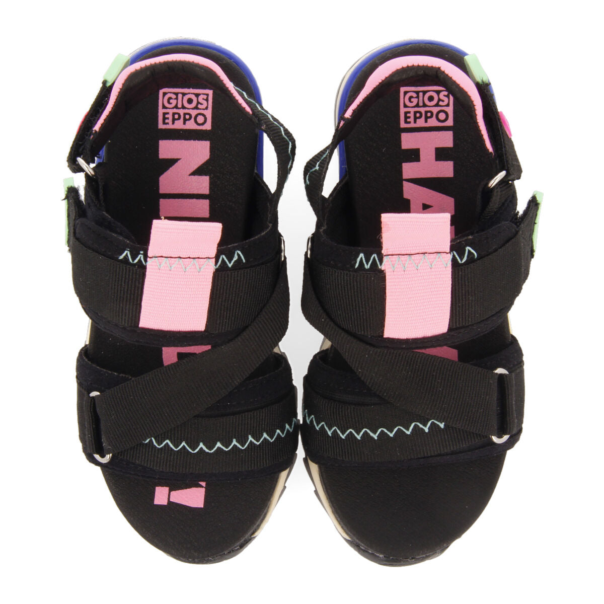 COSALA GIRLS ADJUSTABLE BLACK MESH SPORTS SANDALS