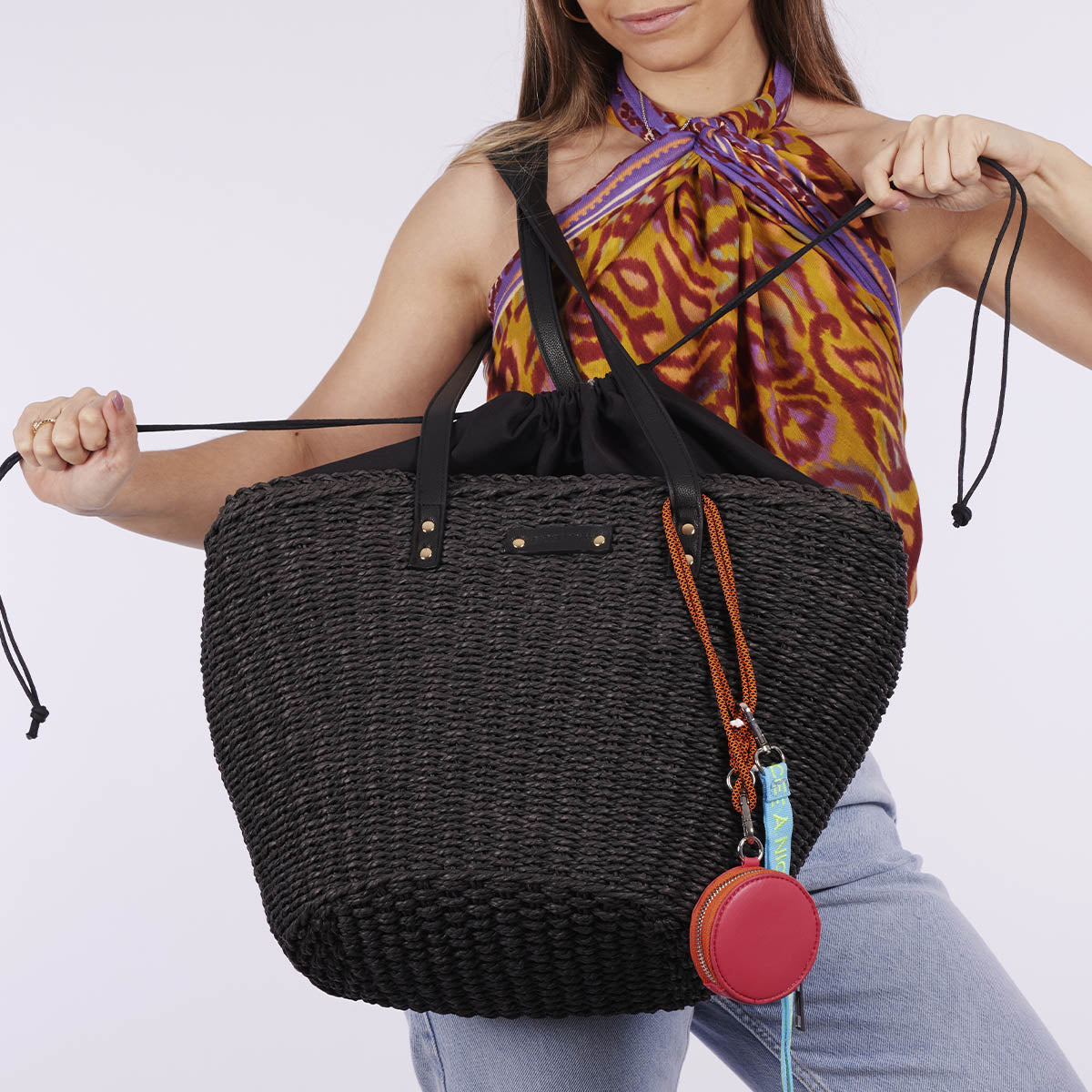 GLENIC WOMEN'S BLACK RAFFIA STRAW BAG
