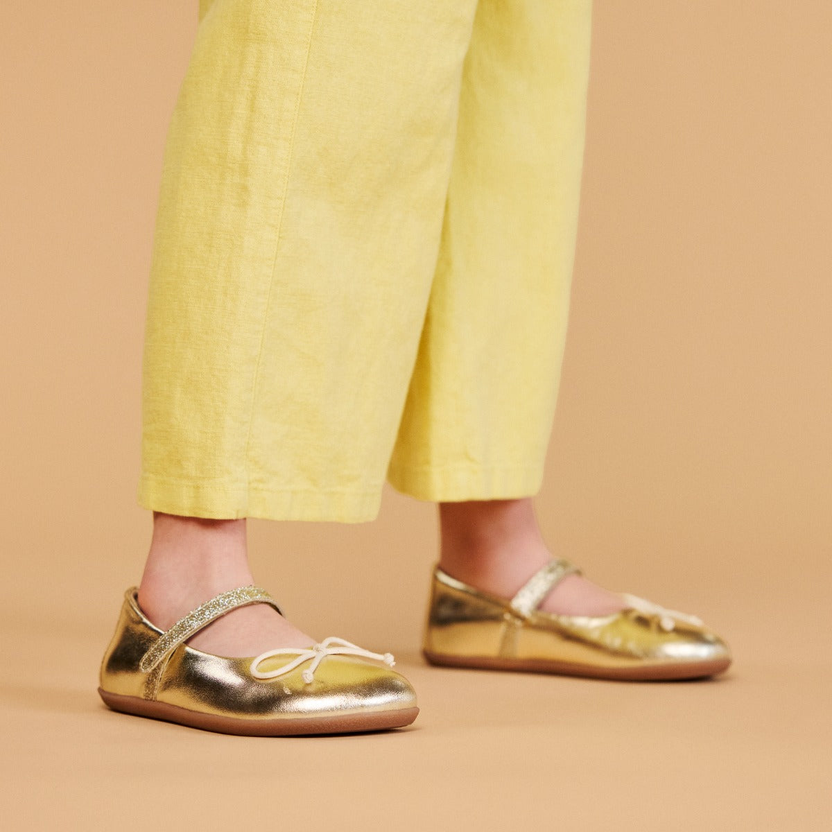 GOLDEN GLITTERY BALLET FLATS WITH BOW EMBELLISHMENT FOR GIRLS AND BOYS ANNSVILLE