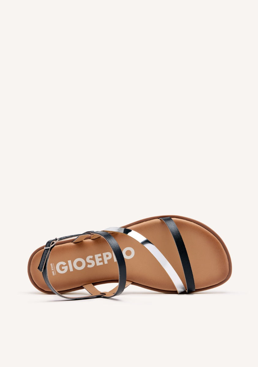LEATHER SANDALS WITH BLACK AND METALLIC STRAPS FOR WOMEN CARBIS