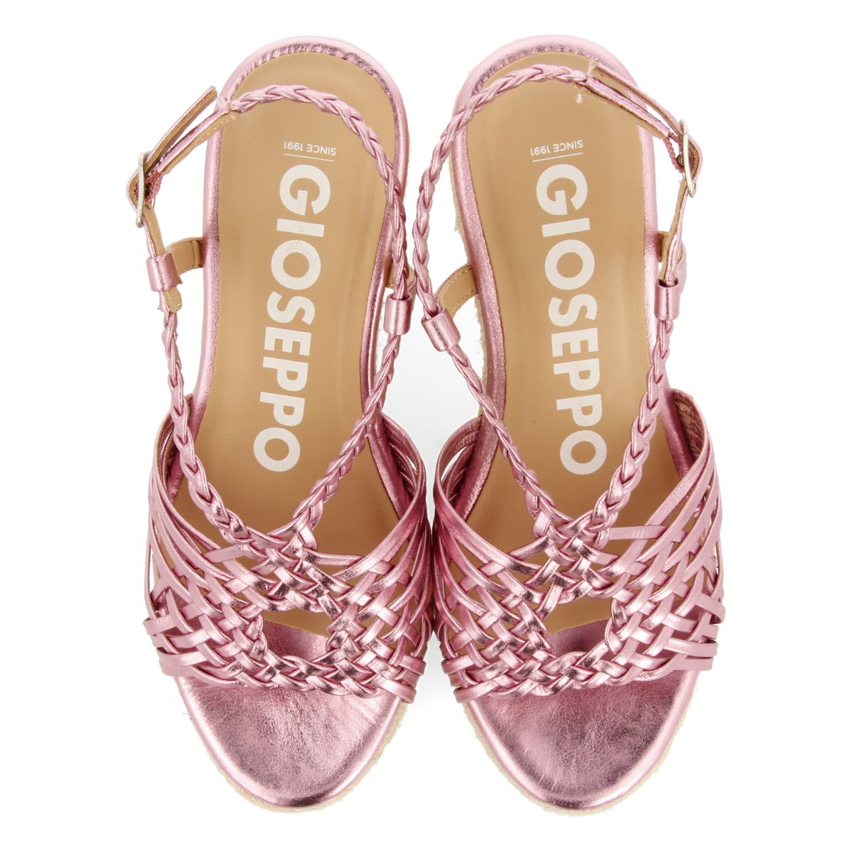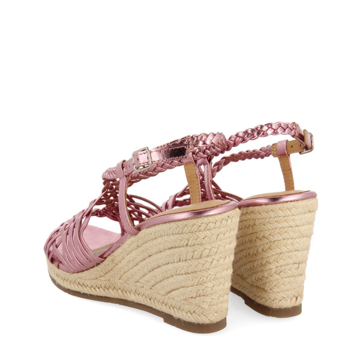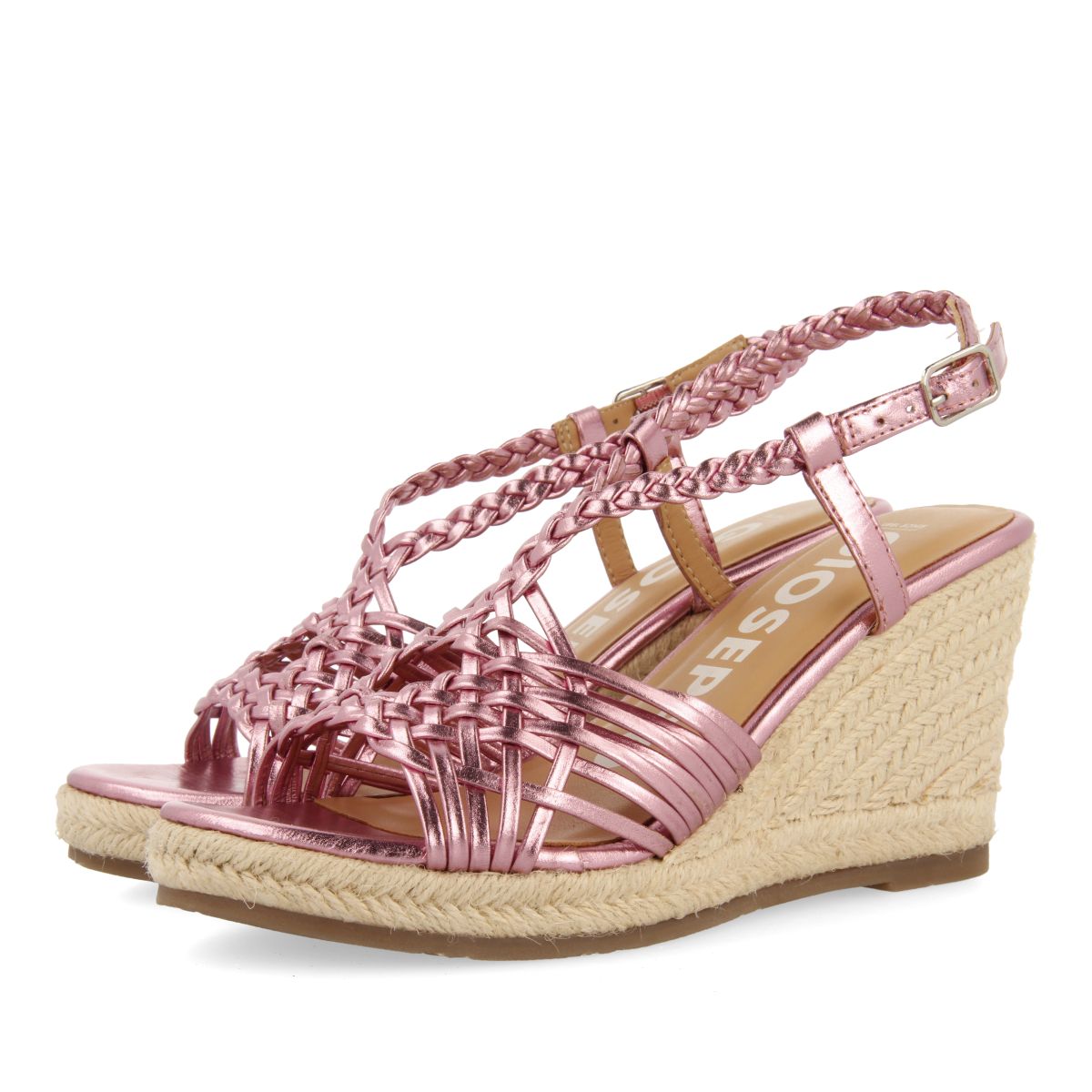 PINK LEATHER SANDALS WITH STRAPS AND HIGH JUTE WEDGE FOR WOMEN GLIDE