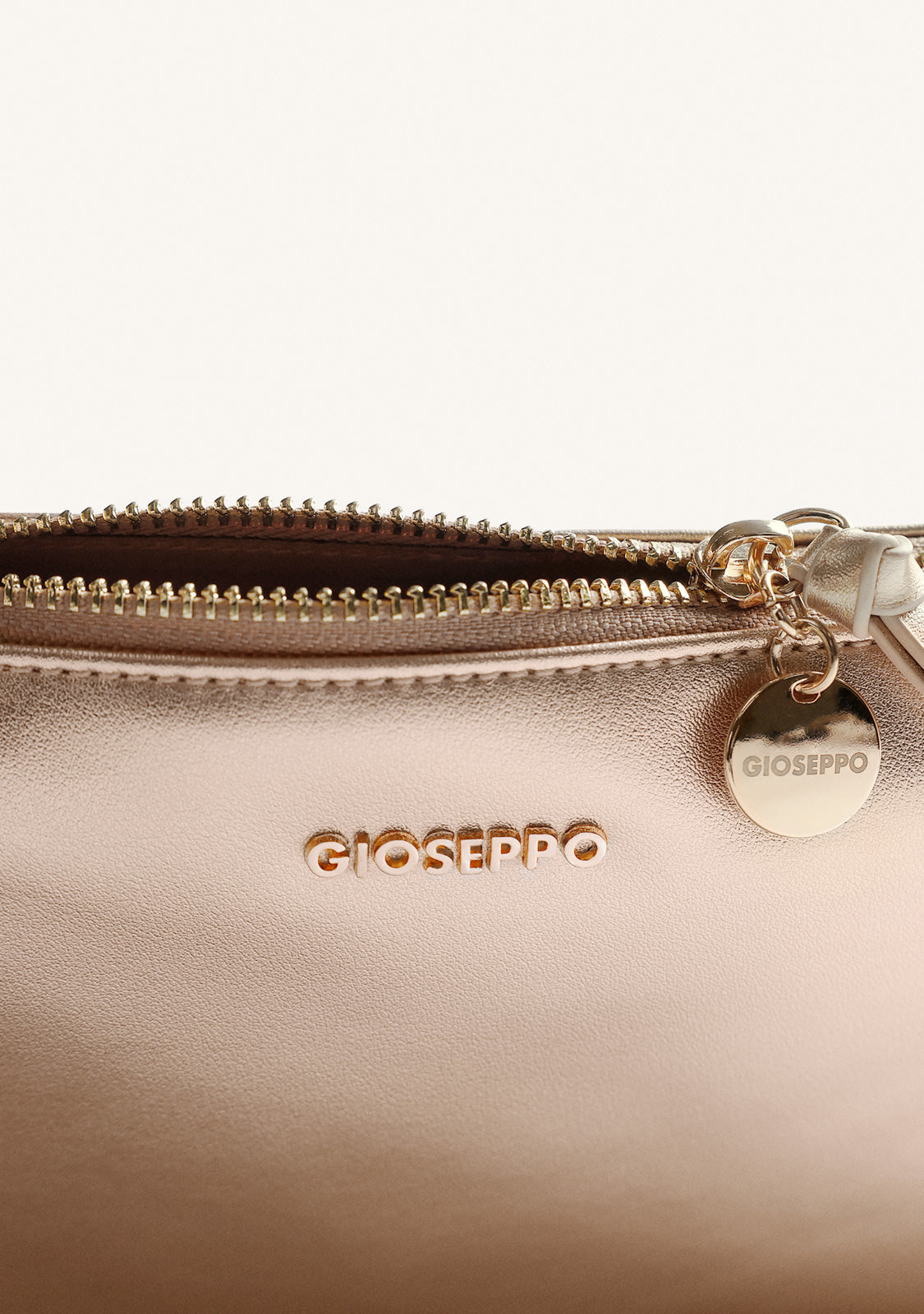 Crossbody bag with a metallic finish. Lined interior and zipper closure. Detachable long strap. Dimensions (L*W*H): 22*2*15 cm. Capacity: 0.66 l. Pockets: 0. Polyurethane upper. Polyester lining.