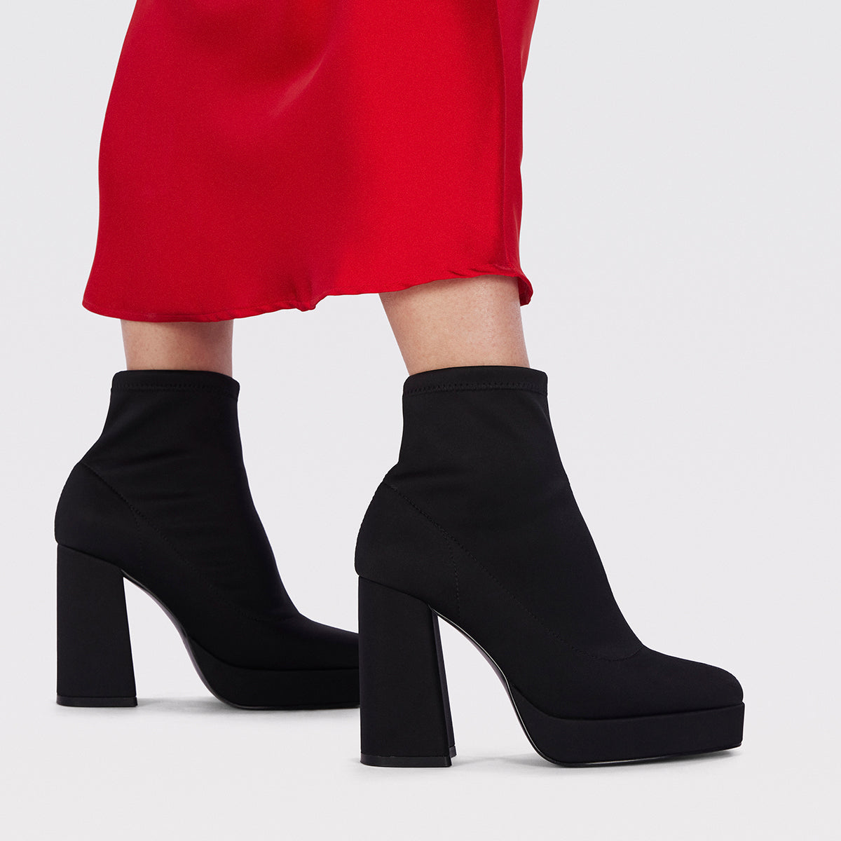 TURENKI WOMEN'S BLACK ANKLE BOOTS WITH WIDE HEELS AND PLATFORMS