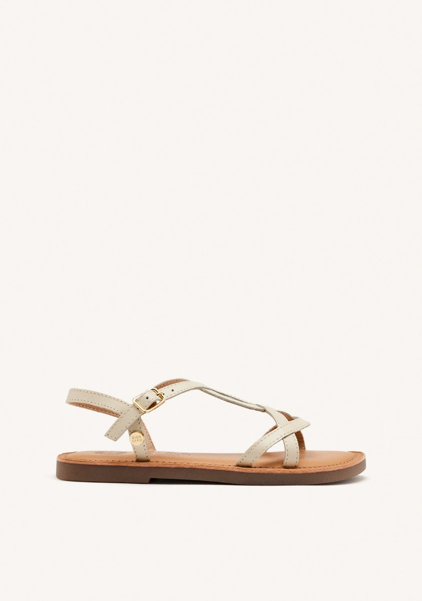 VAREZA GIRLS METALLIC OFF WHITE LEATHER SANDALS