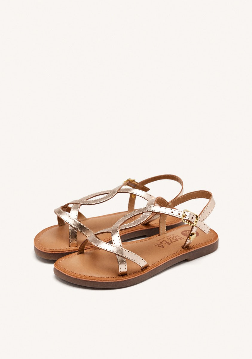 VAREZA GIRLS METALLICLATINUM LEATHER SANDALS
