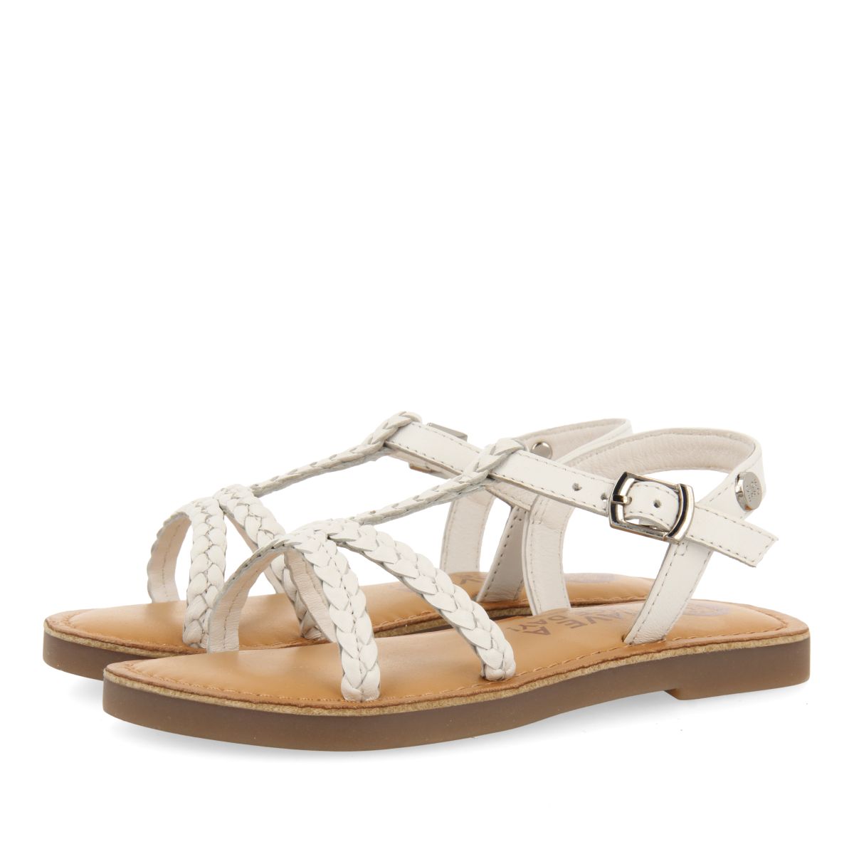 WHITE LEATHER SANDALS WITH BRAIDING FOR GIRL AND BOY CINISI