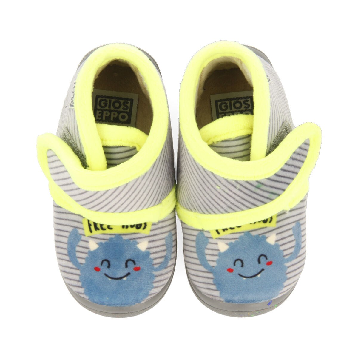 GALTUR BABIES' STRIPY GREY SLIPPERS WITH A MONSTER DETAIL