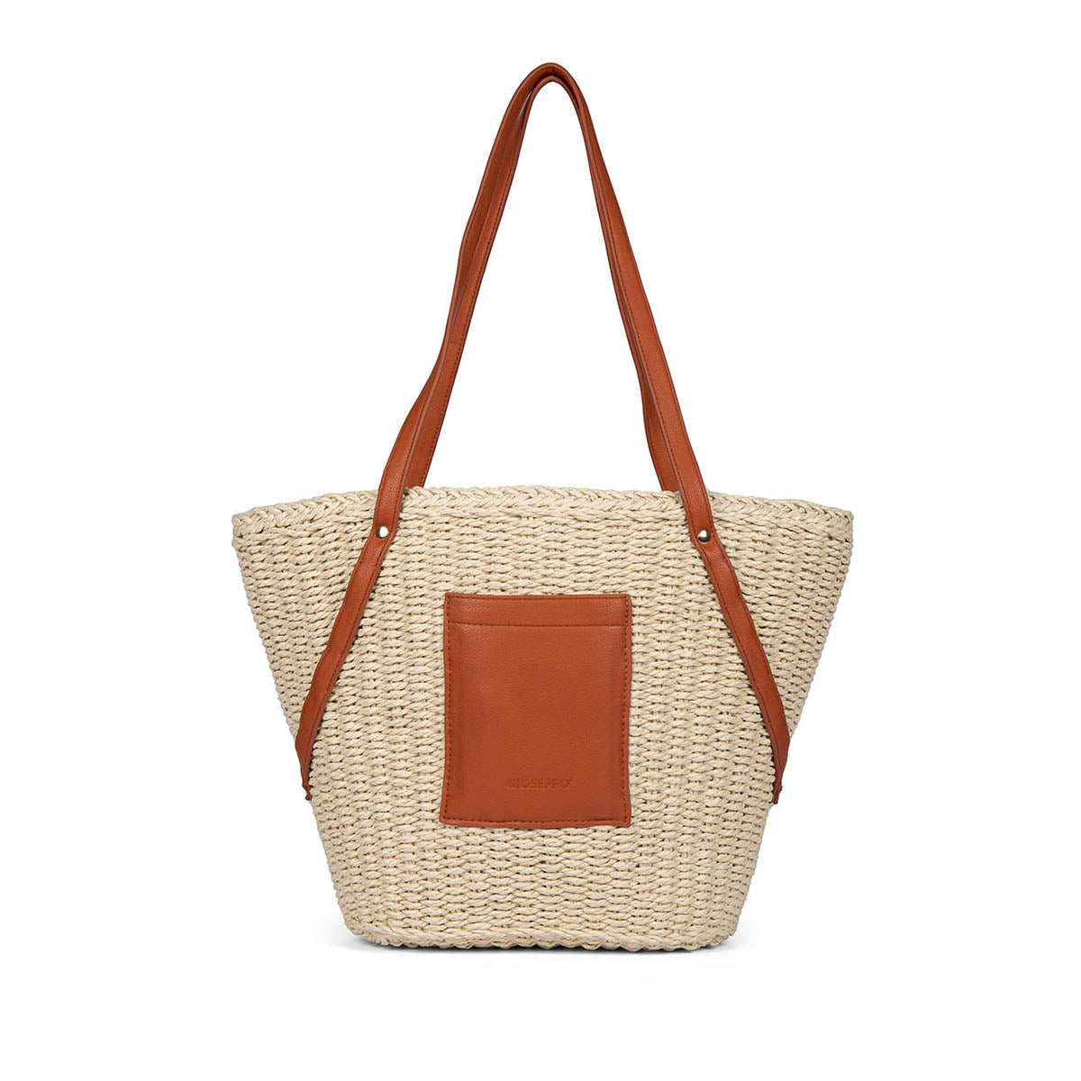 Explore this summer's raffia bags in the new Gioseppo Accessories SS23 Collection now. Natural raffia straw bag with tan handles and a front pocket. Magnetic button fastening. Zipped inner pocket. Detachable zipped rectangular coin purse. Made of plant material with fabric lining.