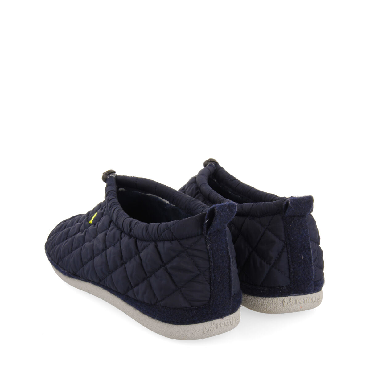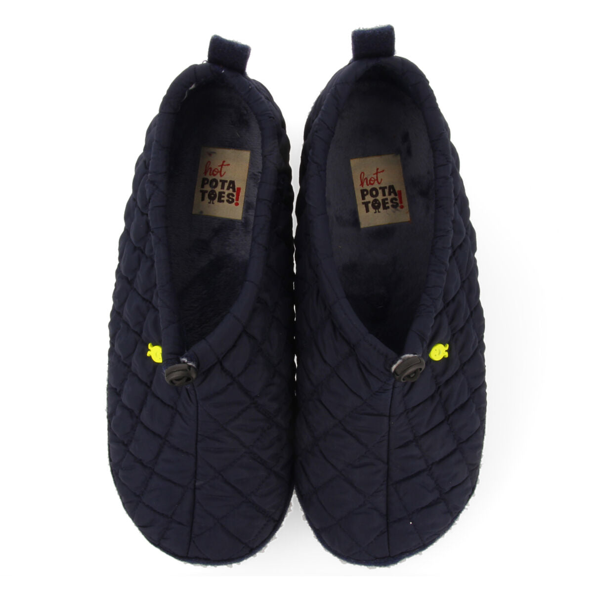 Hot Potatoes brings the most comfortable, cozy, and fun models this season. Men’s padded clog-style house slippers with adjustable closure. Very soft recycled faux fur footbed. Removable insole made from 100% recycled materials. Two-tone natural rubber sole with colored recycled EVA accents. Breathable lining. Discover the latest Hot Potatoes designs and enjoy your comfort zone. Made in Spain.