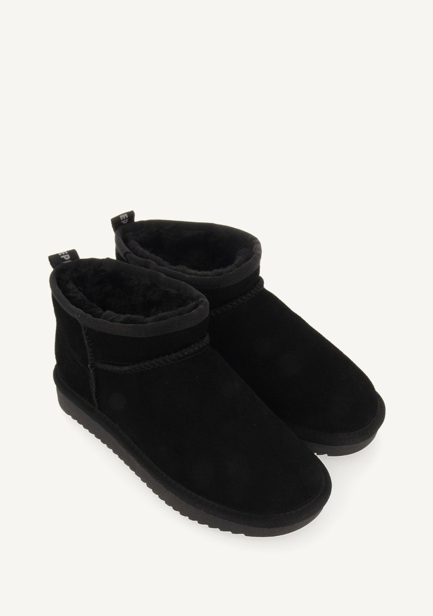 Botas tipo australianas color negro de caña baja forradas de pelo. Su diseño y comodidad hacen que este invierno vuelva uno de los diseños más clásicos de la temporada. Apuesta por su versatilidad y llévalas con cualquier look. ¡Las furry boots van con todo!