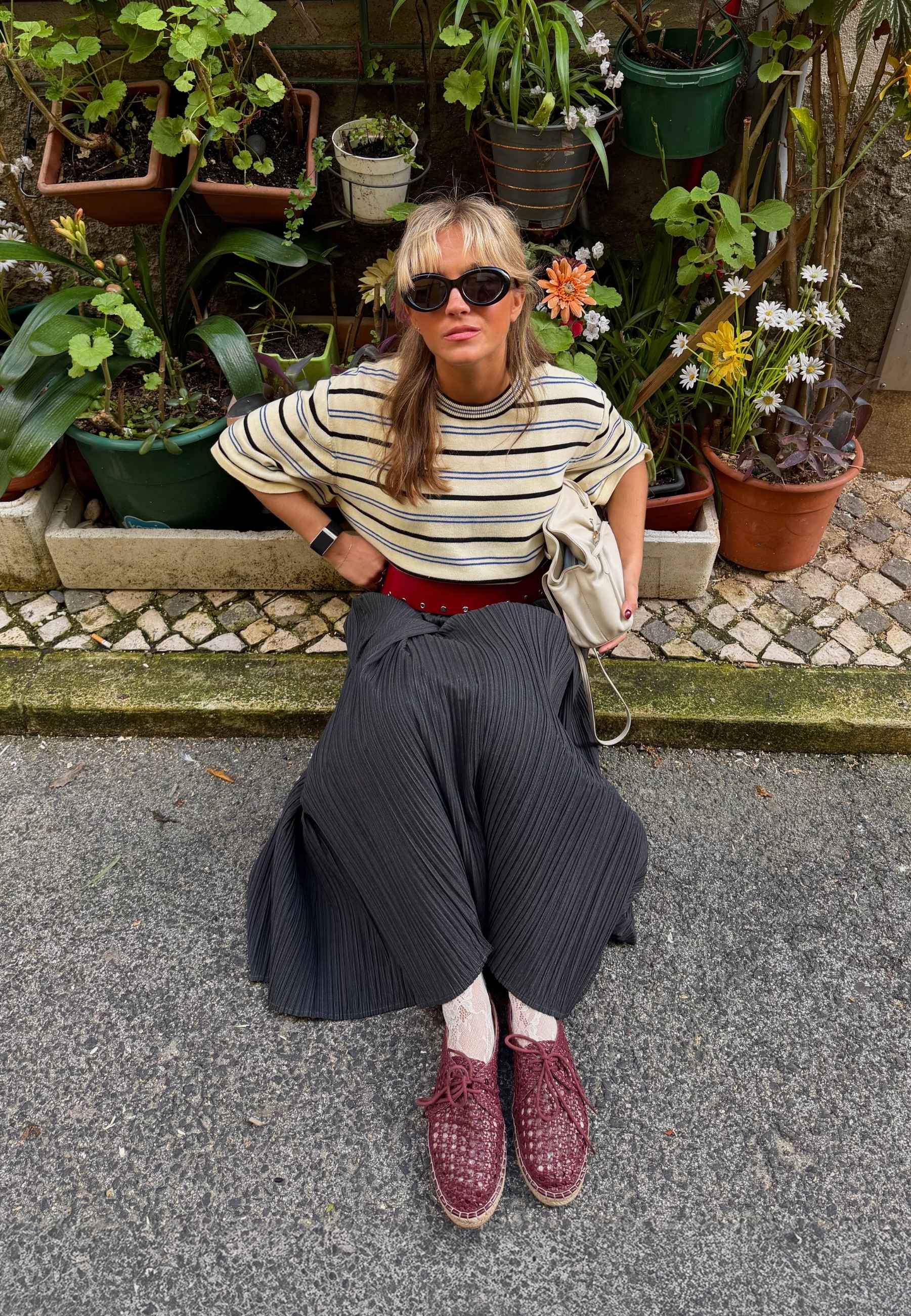 Blucher-style flats made of hand-braided leather. Raffia trim. Cushioned insole. Possible variations in the leather or finish reflect the authenticity of the artisanal process and the use of natural leathers. Leather upper and lining. Plant-based insole. Flexible TPR sole.