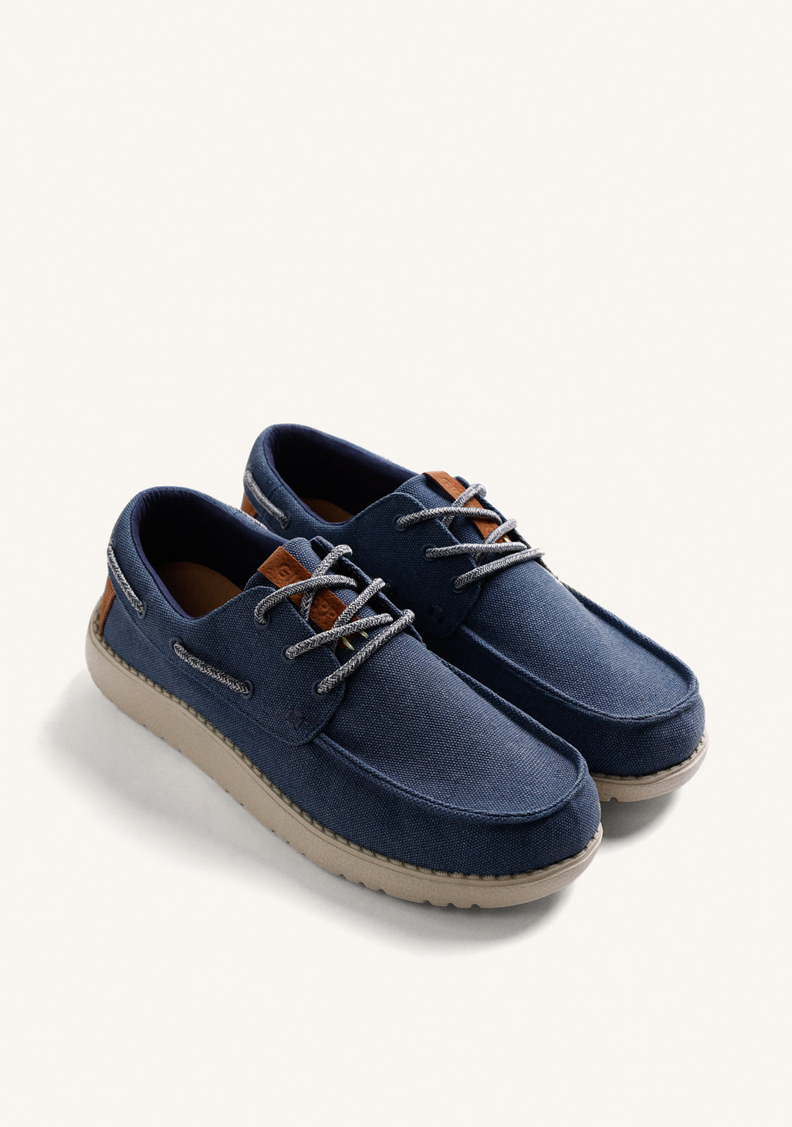 Wallabee-style canvas loafers with colourful accents. They feature a cushioned, removable insole. Platform height: 2.5 cm. Soft cotton and breathable polyester upper. Breathable polyester lining and insole. Lightweight EVA sole.