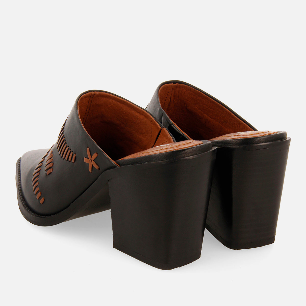 EMBROIDERED LEATHER HEEL MULES MEREDITH