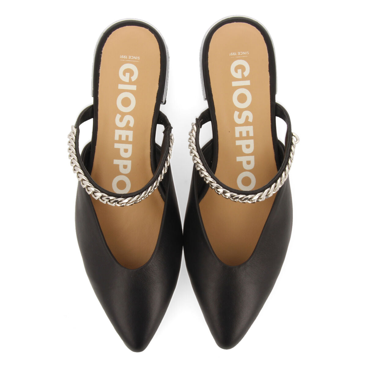 ESNON WOMEN'S BLACK SLINGBACK SANDALS WITH DECORATIVE CHAIN