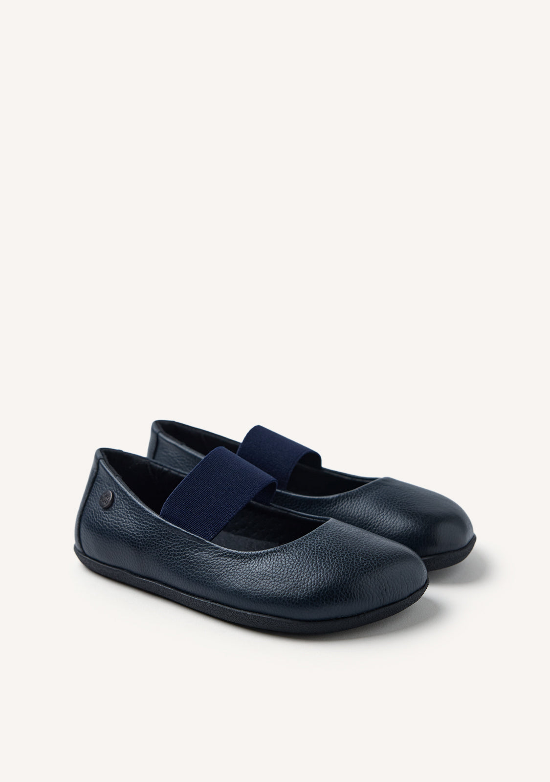 Leather school ballet flats with elastic on the instep. Designed following minimalist trends to ensure a natural step. Flexible and torsion-resistant. Removable insole. No splinting reinforcements. Thin sole. Wide toe box. Soft leather. No unevenness (zero drop). Leather upper, lining and insole. Flexible TPR sole. This item has been designed under the advice of the Illustrious Official College of Podiatrists of the Valencian Community (ICOPCV) to ensure the care and attention that foot health requires.