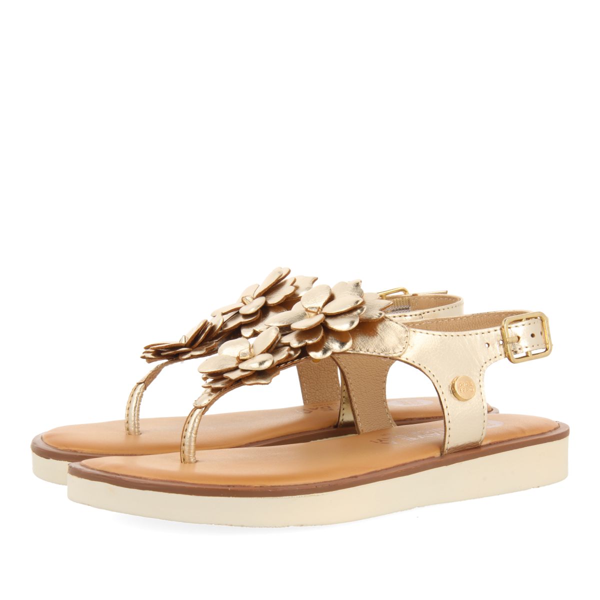 GOLDEN LEATHER SANDALS WITH FLOWER DECORATION FOR GIRL AND BOY IMOTSKI