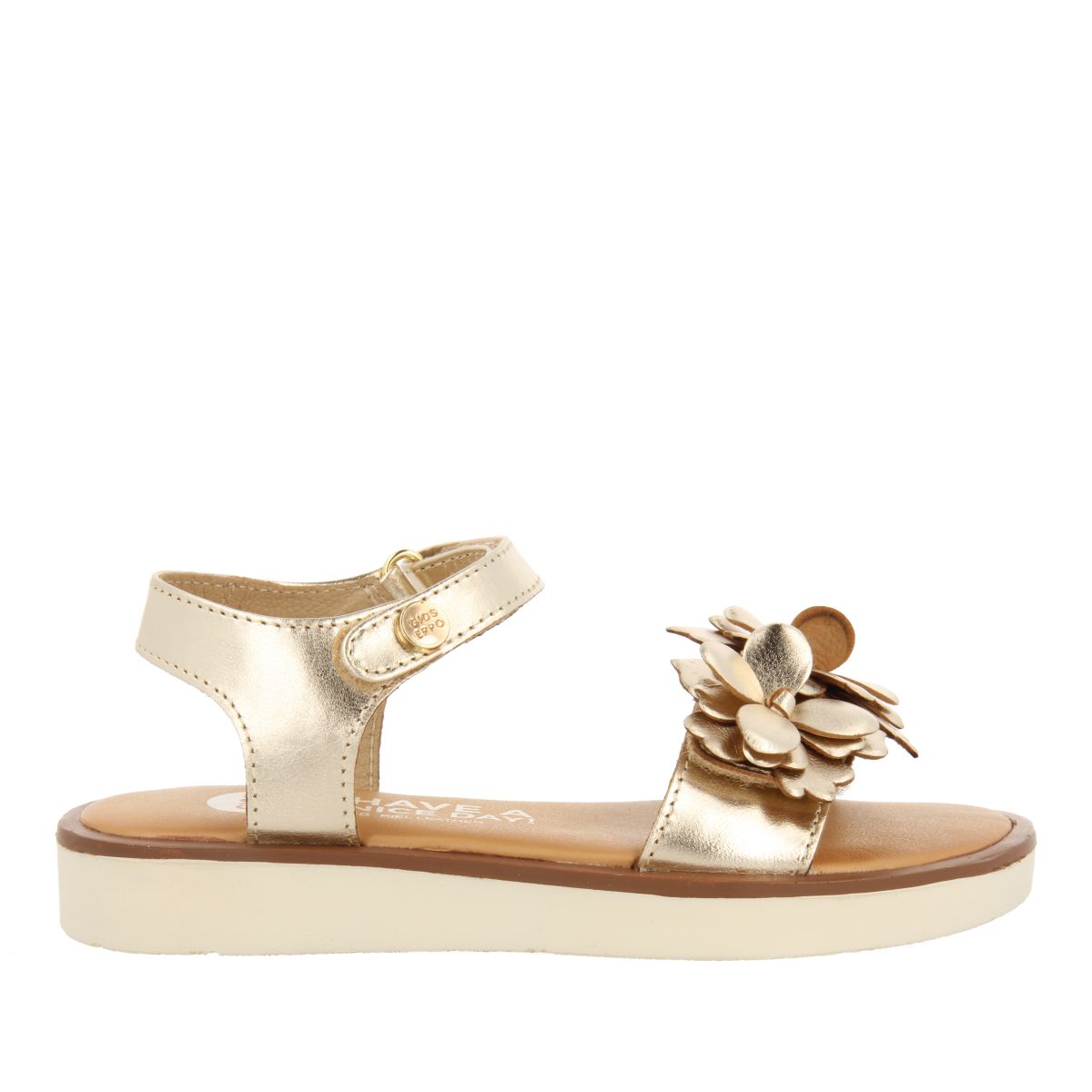 GOLDEN LEATHER SANDALS WITH FLOWER DECORATION FOR GIRL AND BOY NEHALEM