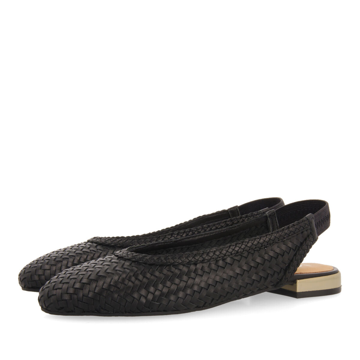 ITAPORA WOMEN'S BLACK BRAIDED LEATHER SLINGBACK BALLET FLATS