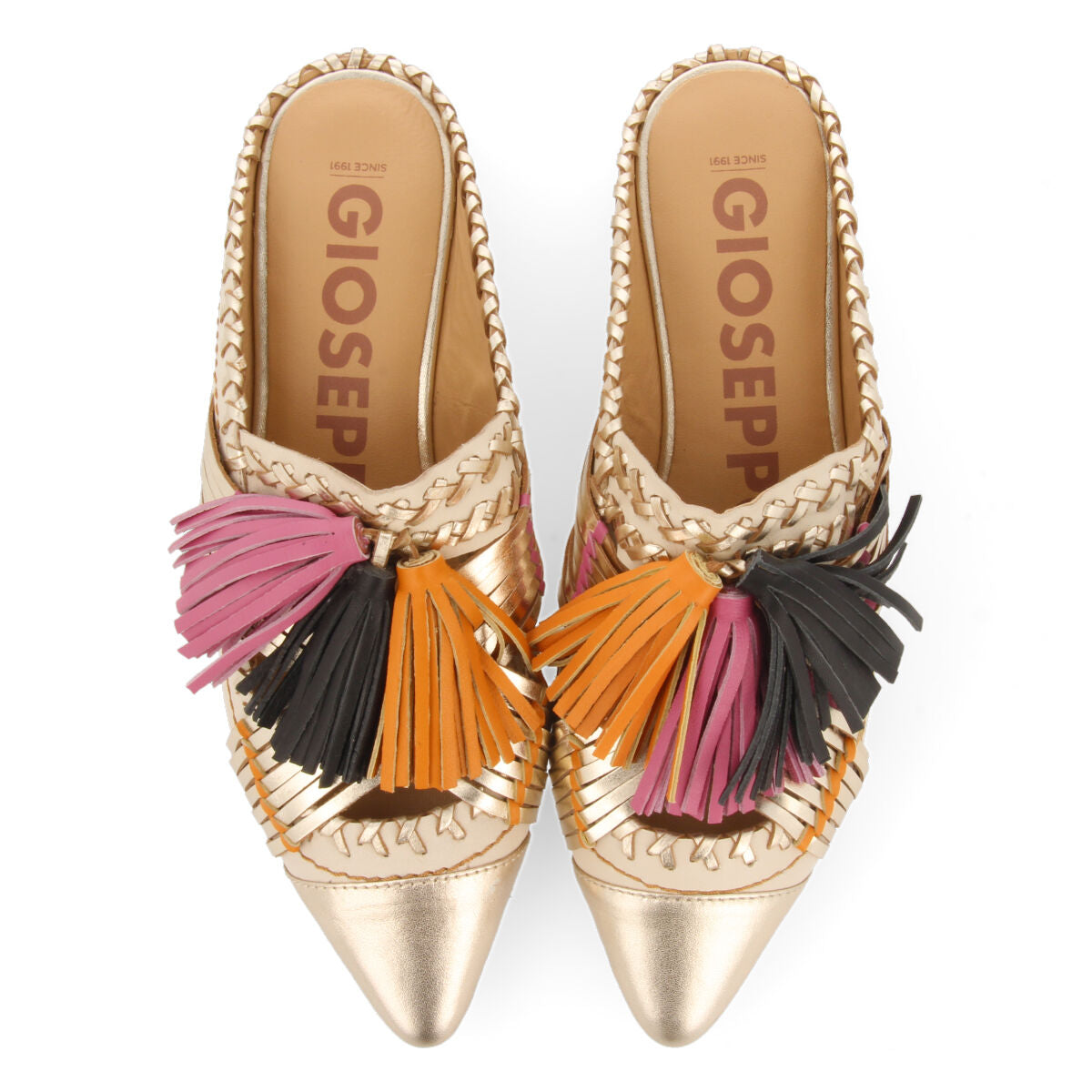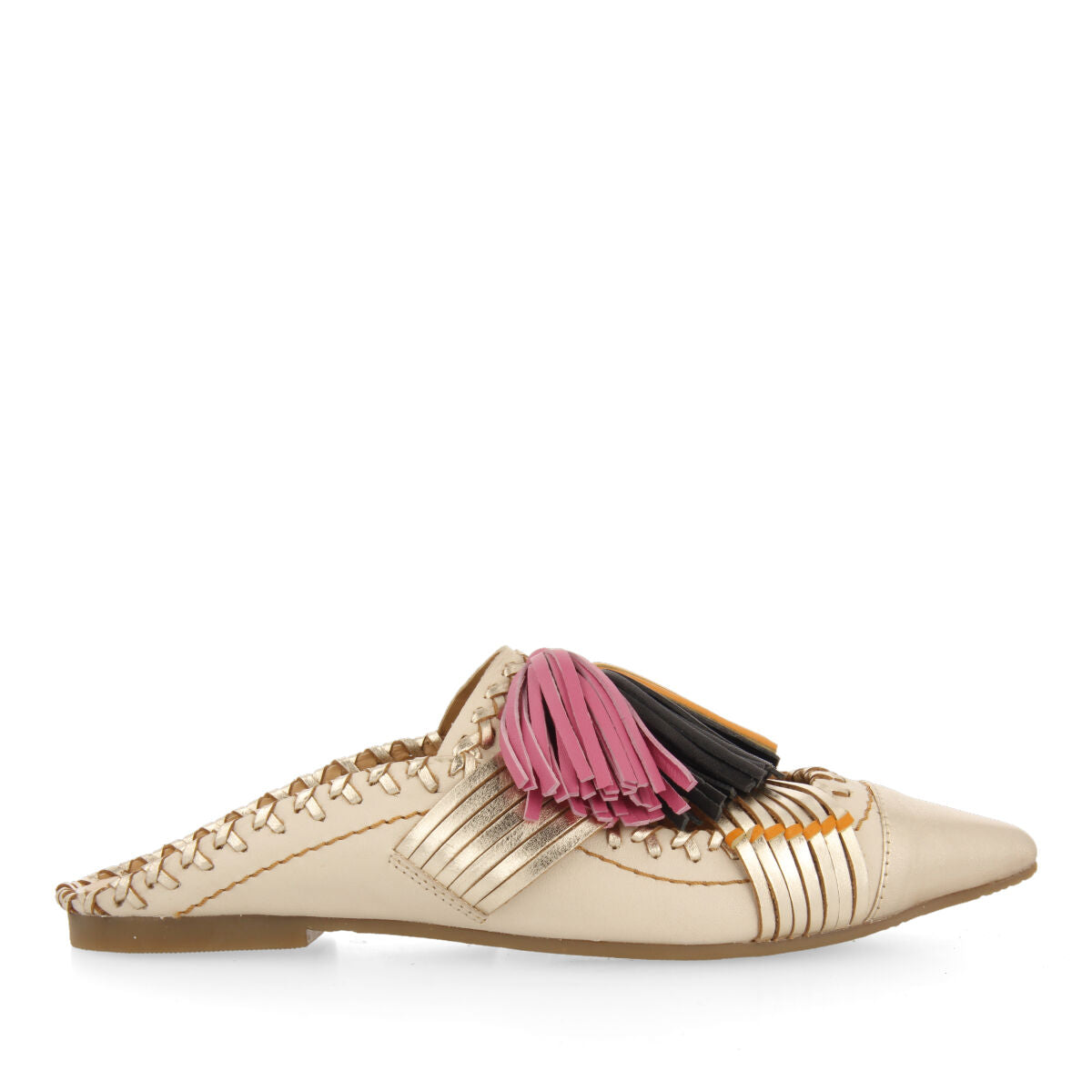 PAPANTLA WOMEN'S OFF-WHITE LEATHER MULES WITH TASSELS