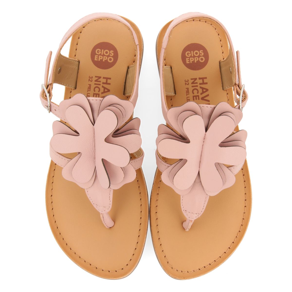PINK LEATHER GREEK STYLE SANDALS WITH FLOWER DECORATION FOR GIRL AND BOY SUKE