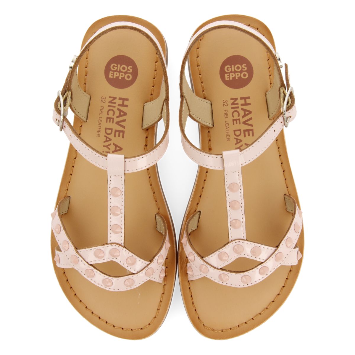 PINK LEATHER SANDALS WITH STUDS FOR GIRL AND BOY STIBB