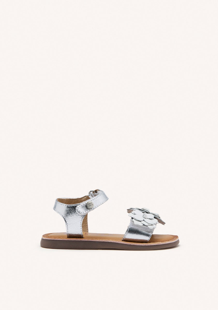 SILVER LEATHER SANDALS WITH FLOWER EMBELLISHMENT FOR GIRL AND BOY SHEGAN