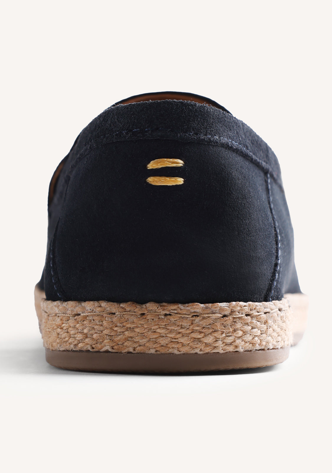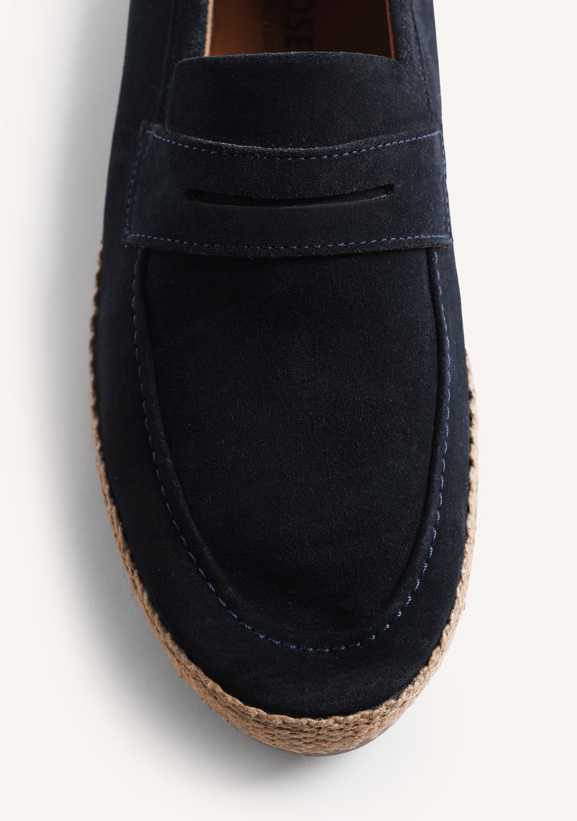 Monocolour suede leather loafers with a raffia-effect trim. Mask detail. They feature a removable, thermoformed insole to distribute body weight evenly across the sole. Platform height: 3 cm. Leather upper and insole. Leather and soft cotton lining. Flexible TPR sole.