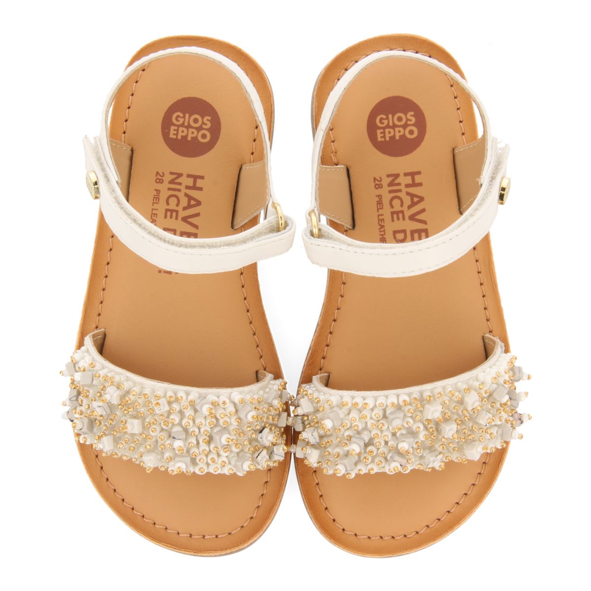 WHITE LEATHER SANDALS WITH BEAD EMBELLISHMENTS FOR GIRL AND BOY BLESLE