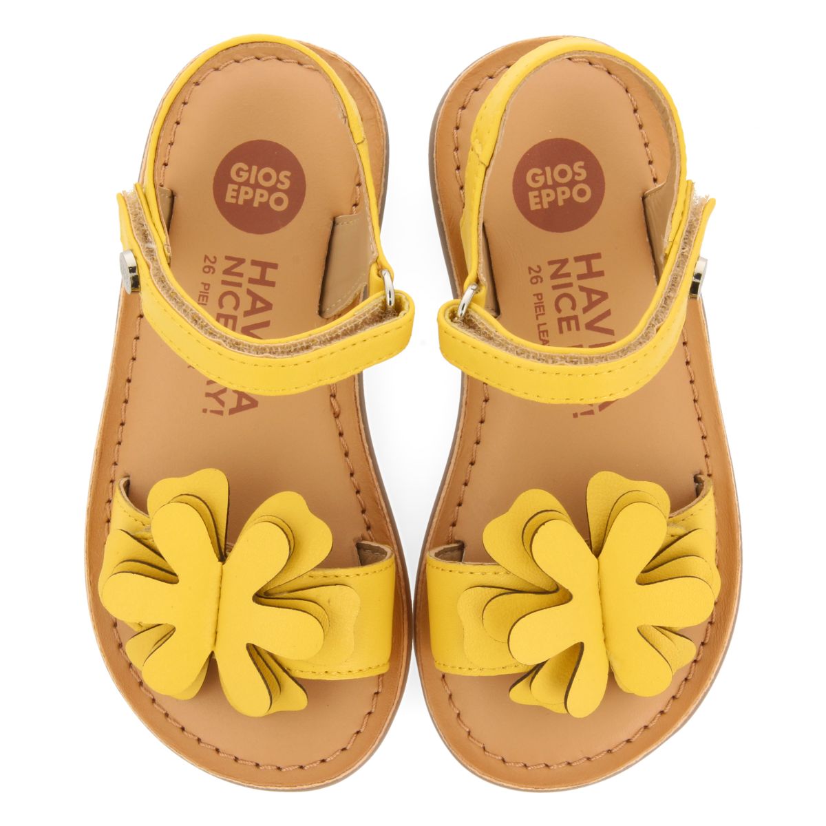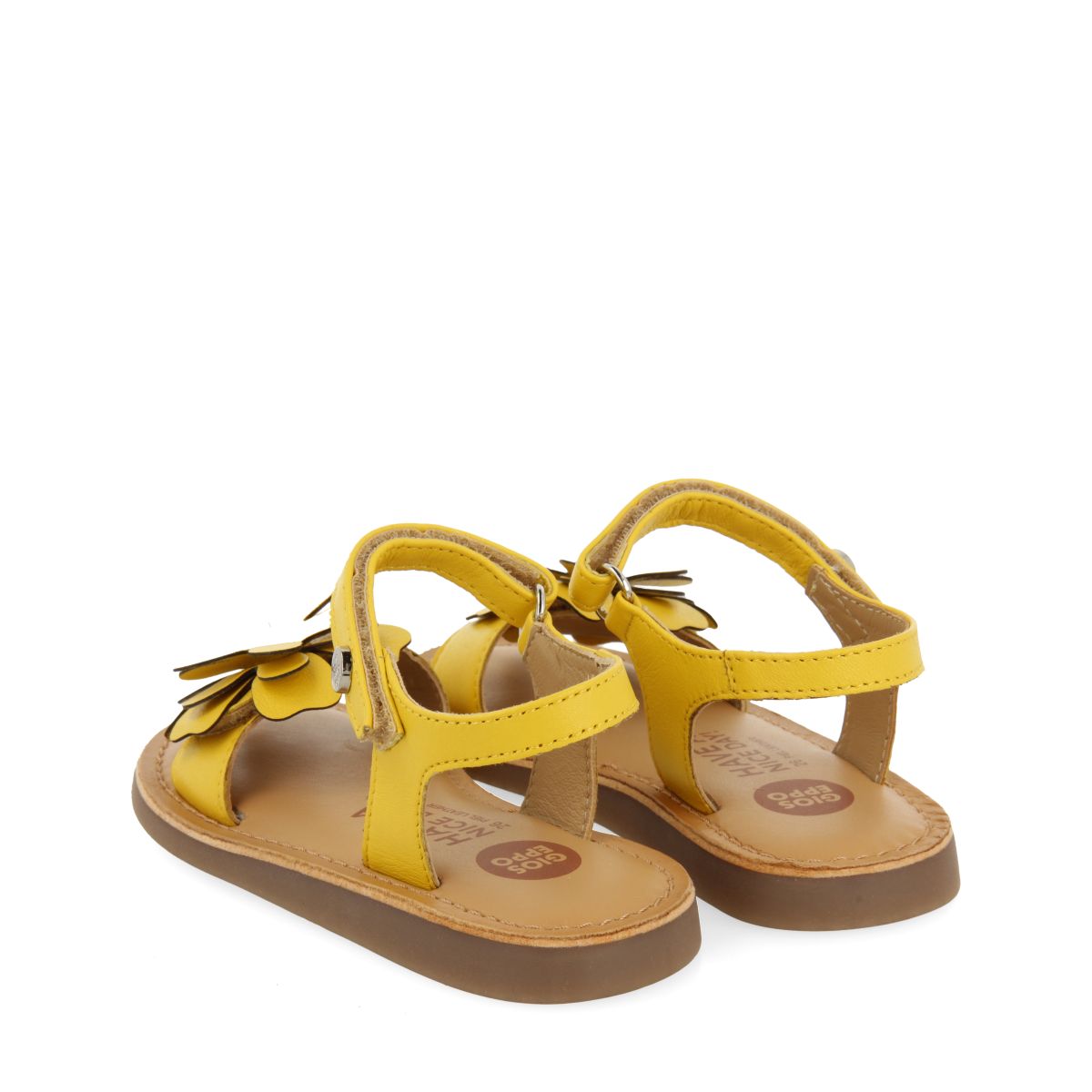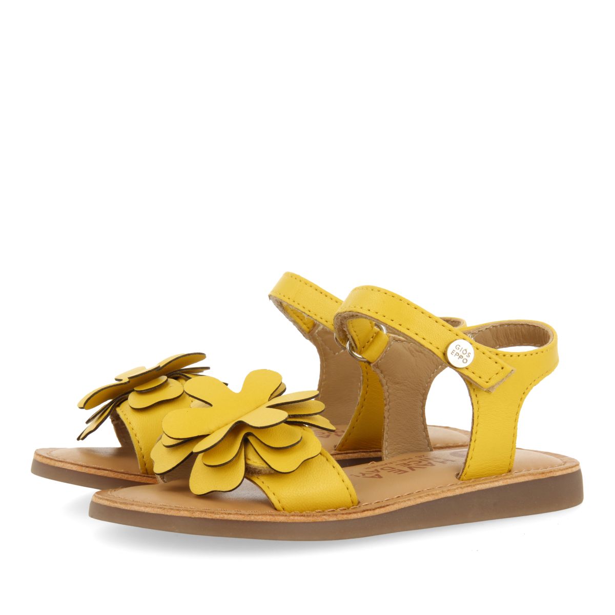 YELLOW LEATHER SANDALS WITH FLOWER DECORATION FOR GIRL AND BOY TAKILMA