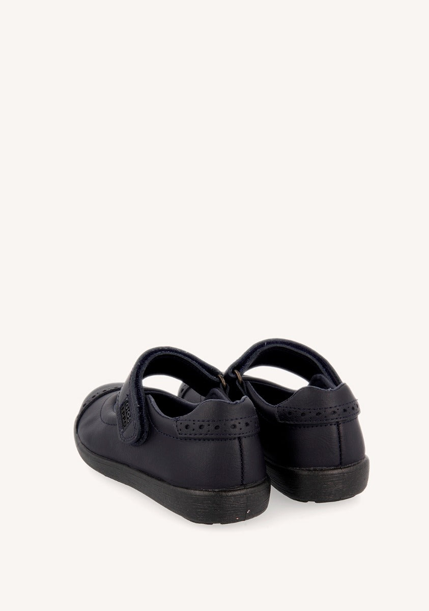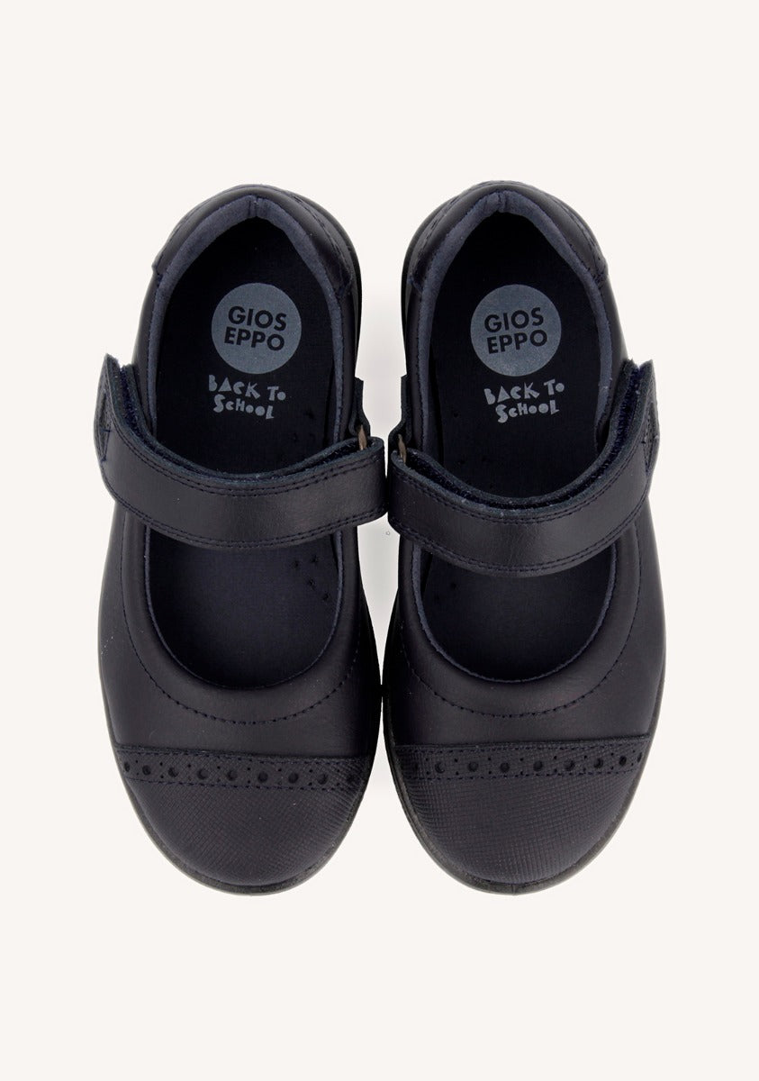 Zapatos colegiales estilo bailarina, diseñados y fabricados en España con todo nuestro cariño. Corte en piel color azul marino y forro en material transpirable, absorbente y termorregulador. Cuentan además con puntera reforzada de alta resistencia y suela de goma antideslizante, ligera y ultra flexible. Para mayor comodidad de los peques de la casa, se abrochan fácilmente con doblecierre ajustable, garantizando la correcta sujeción de cualquier pie, con un toque de última moda. ¿Lo mejor? ¡Se pueden lavar en lavadora (máx. 30º)!
