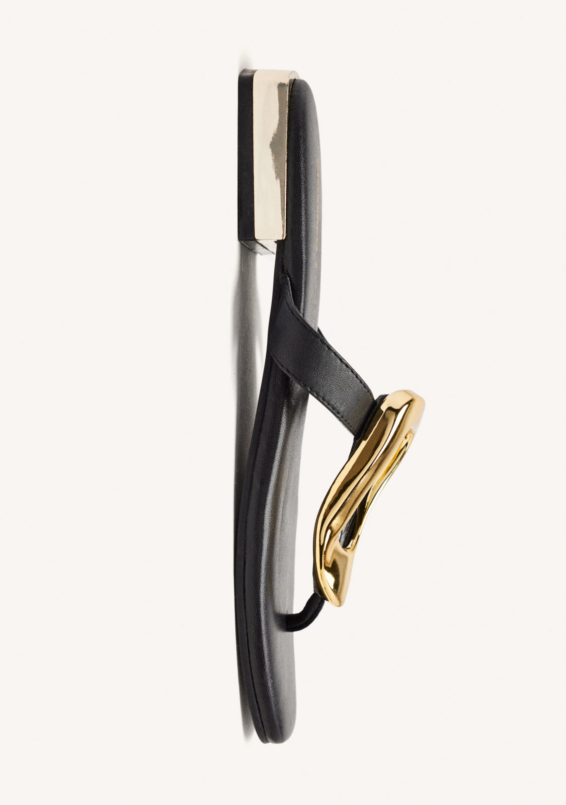 SANDALIAS NEGRAS DE PIEL CON ADORNO METÁLICO PARA MUJER VENDRES