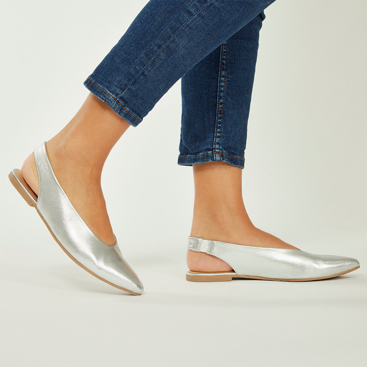 BAILARINAS DESTALONADAS DE PIEL COLOR PLATA PARA MUJER
