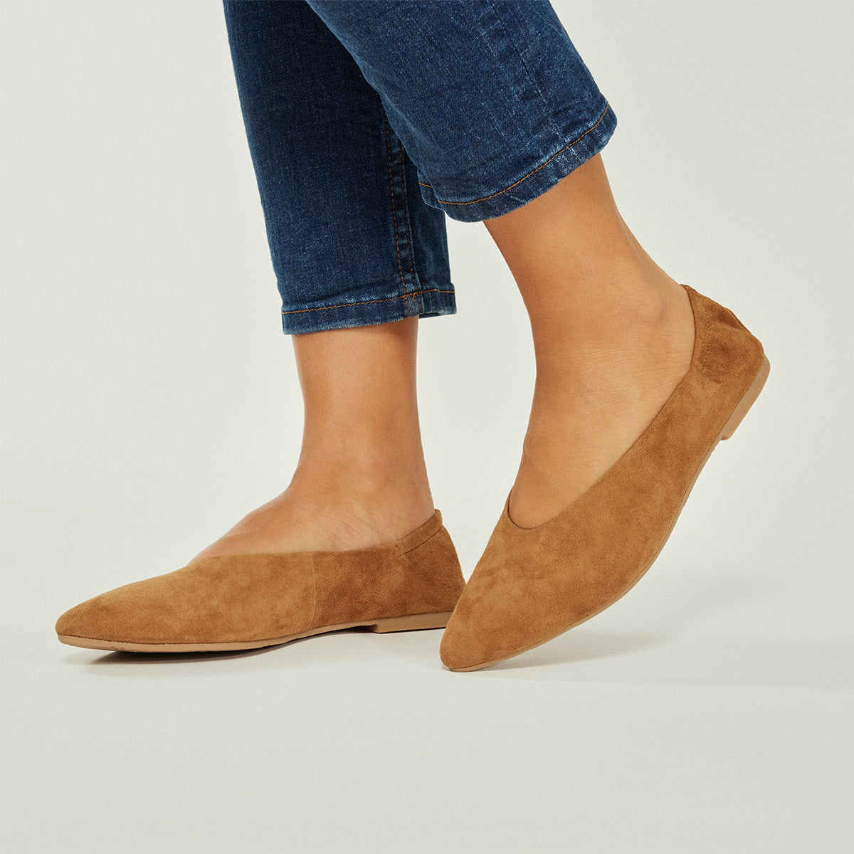 BAILARINAS DE PIEL COLOR CUERO CON PUNTA FINA Y TALÓN FRUNCIDO PARA MUJER