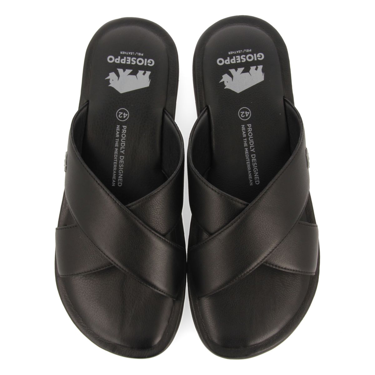 SANDALIAS NEGRAS DE PIEL CON PALA CRUZADA PARA HOMBRE OROSH