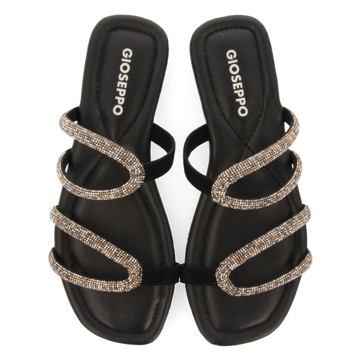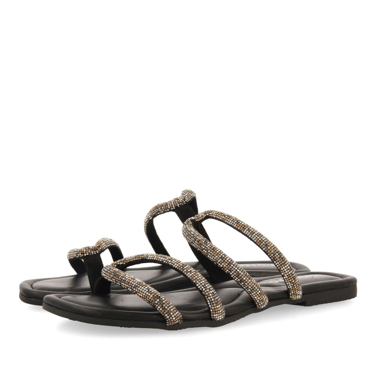 SANDALIAS NEGRAS DE PIEL CON TIRAS CON PEDRERÍA PARA MUJER BONIFAY