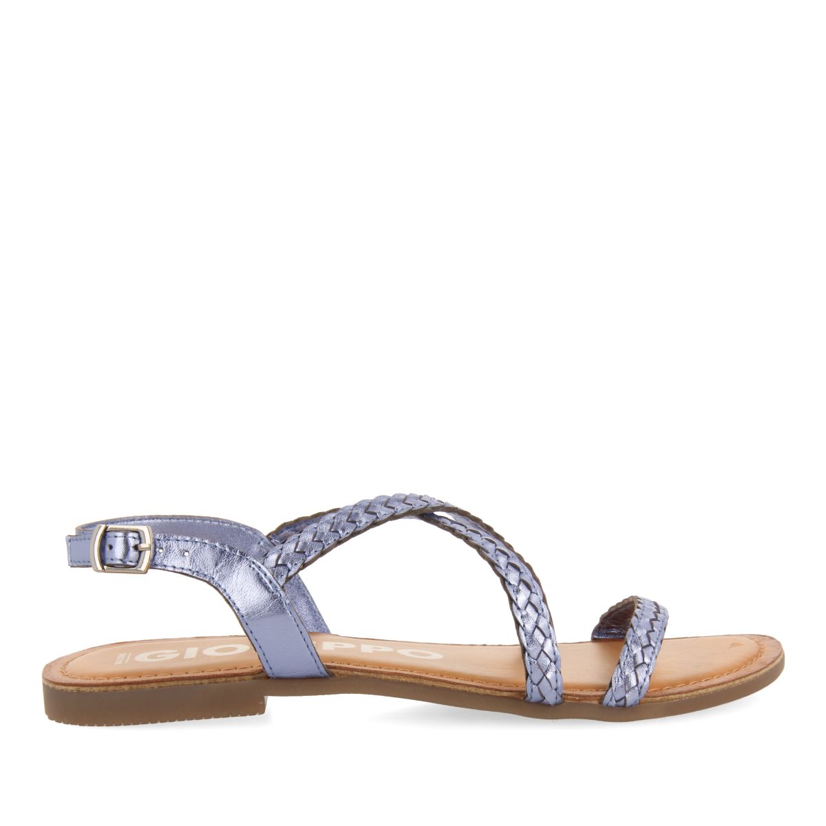 SANDALIAS AZUL METALIZADO DE PIEL TRENZADA PARA MUJER CAPACI