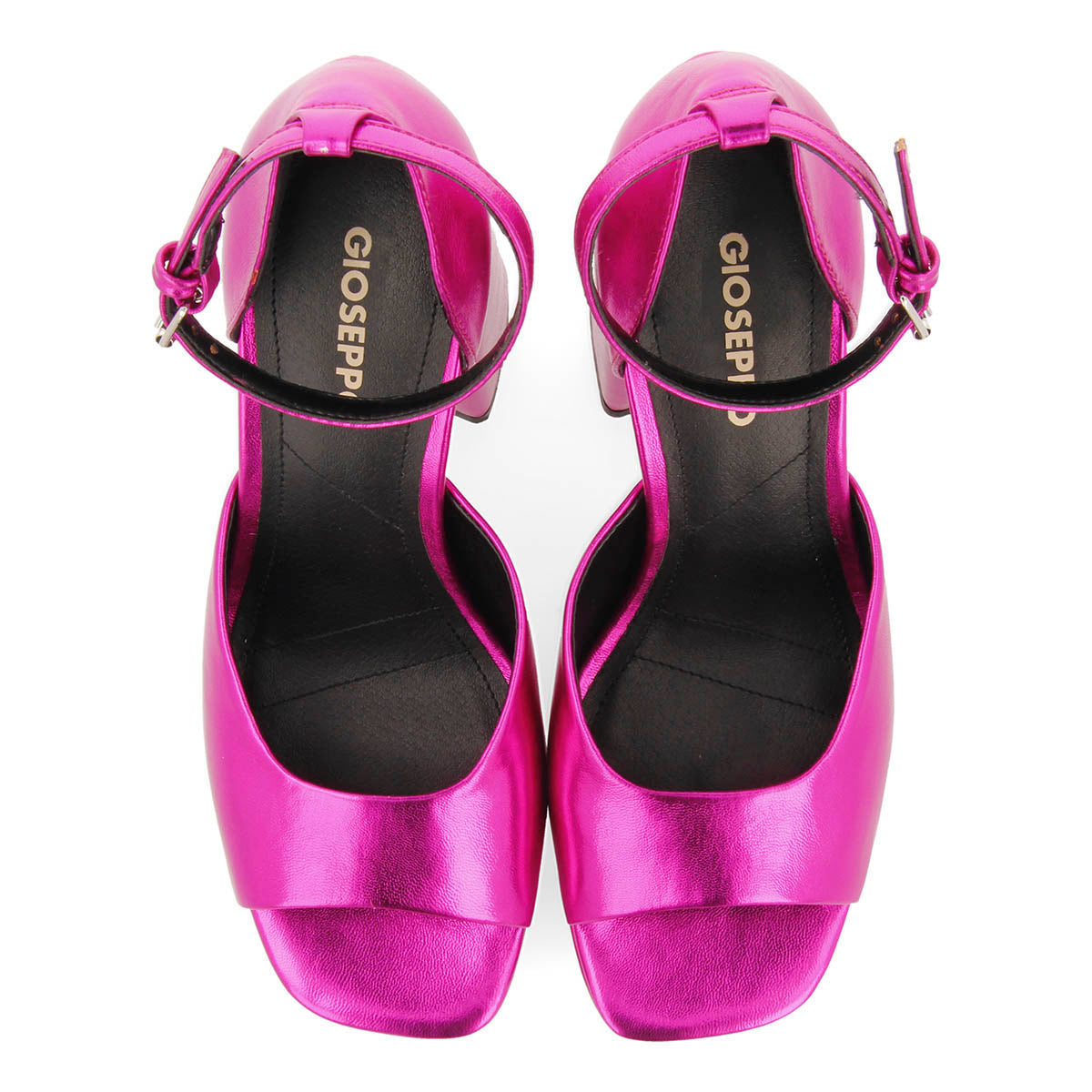 ¡Tus imprescindibles para arrasar con tus looks! Sandalias fucsia de tacón ancho y plataforma con puntera semicuadrada y pulsera al tobillo ajustable. Plantilla de piel acolchada de látex. Piso flexible. Descubre lo último en calzado de mujer en la nueva colección de Gioseppo Woman.