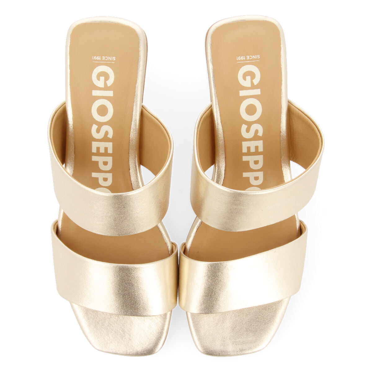 SANDALIAS DORADAS CON DOBLE TIRA Y TACÓN PARA MUJER BUTTEAUX