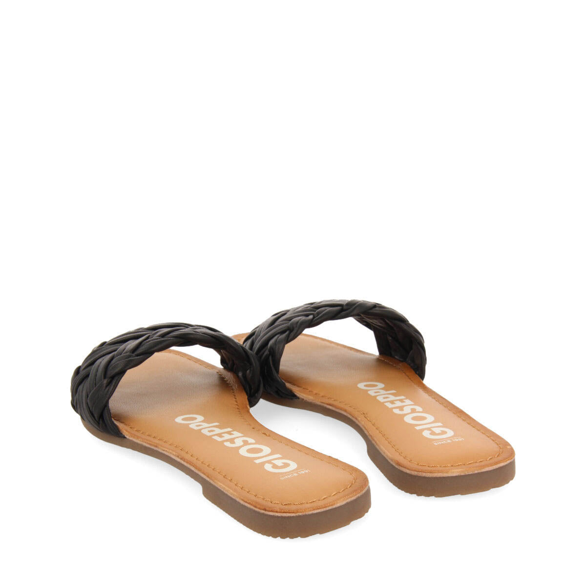 Comodidad y estilo. Sandalias planas con pala trenzada color negro. Plantilla de piel acolchada de látex que asegura un mayor confort. Piso flexible. Plantilla de piel curtida en tenerías que siguen un protocolo de curtición más sostenible bajo los estándares Leather Working Group. No te pierdas las novedades en las rebajas de sandalias de mujer de esta temporada en la nueva colección de Gioseppo Woman.