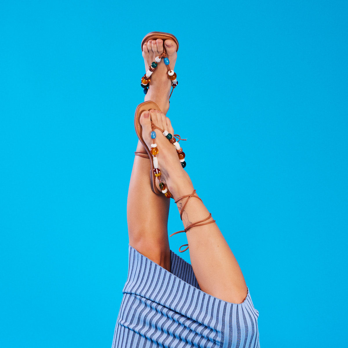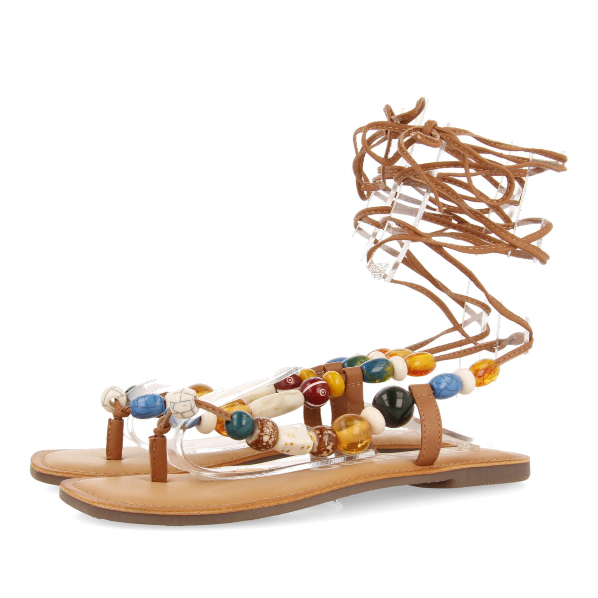 SANDALIAS DE PIEL CON DETALLE DE CUENTAS MULTICOLOR PARA MUJER CHALLEX